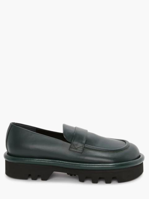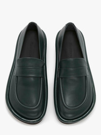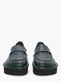 - Leather chunky loafer - Tubular detailing - Chunky ridged sole - Match with the bumper family - Fits true to size, take your normal size Details - Colour: Forest Green - Outer: 80% Full Grain Cow Leather, 20% Polyester - Lining: 100% Split Sheep Leather - Sole: 100% Rubber - Made in Italy