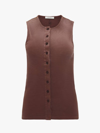 - Jersey tank top complete with button front detailing - Tonal buttons - Scoop neckline - Tonal branded embroidery - Fitted silhouette - take your usual size Additional Information - Colour: Chestnut - Composition: 98% Cotton, 2% Elastane - Rib Jersey Fabrication - Made in: Portugal - SKU: JO0266PG1512621