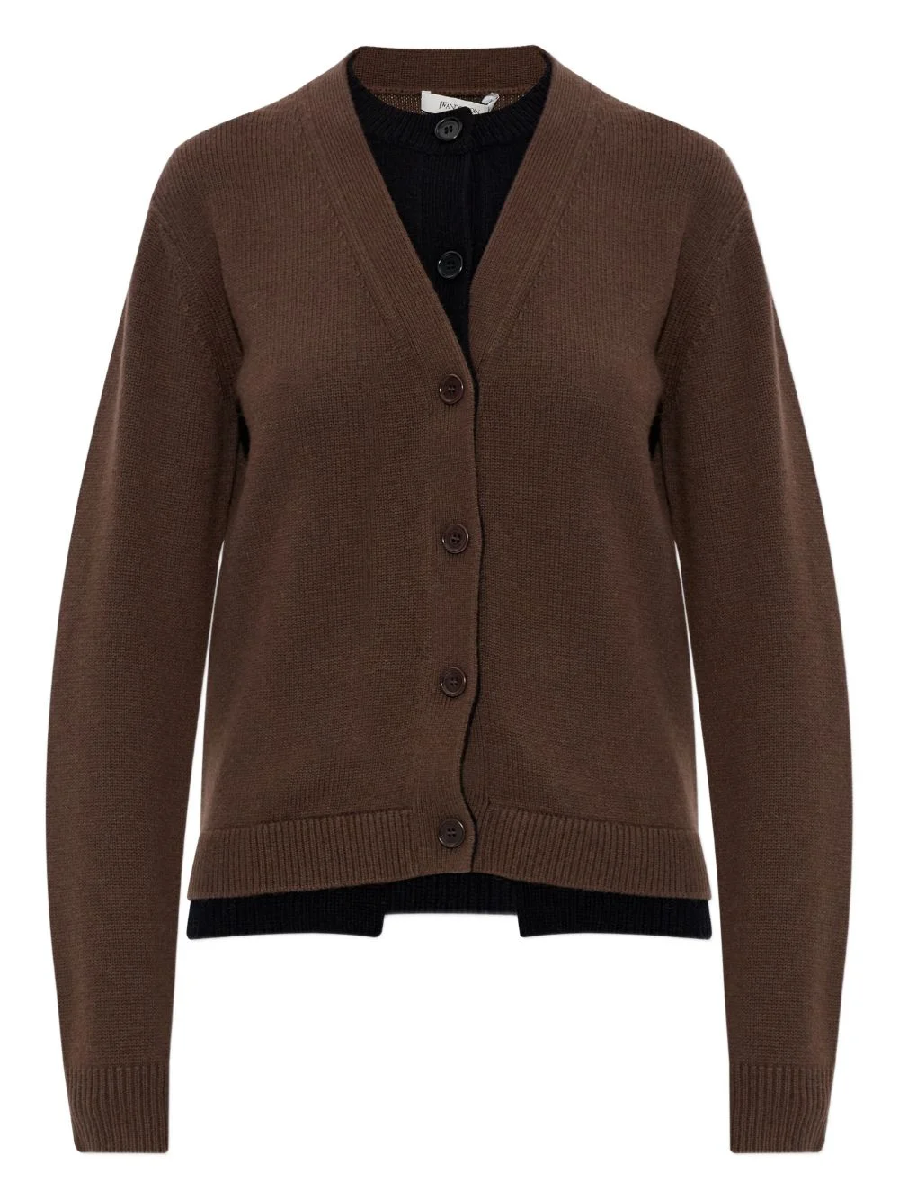 button-front wool cardigan Highlights - Brown - V-neck - Button fastening - Ribbed trims - Wool material Imported Composition Wool 100% Washing instructions Read Manufacturer Guidelines
