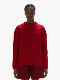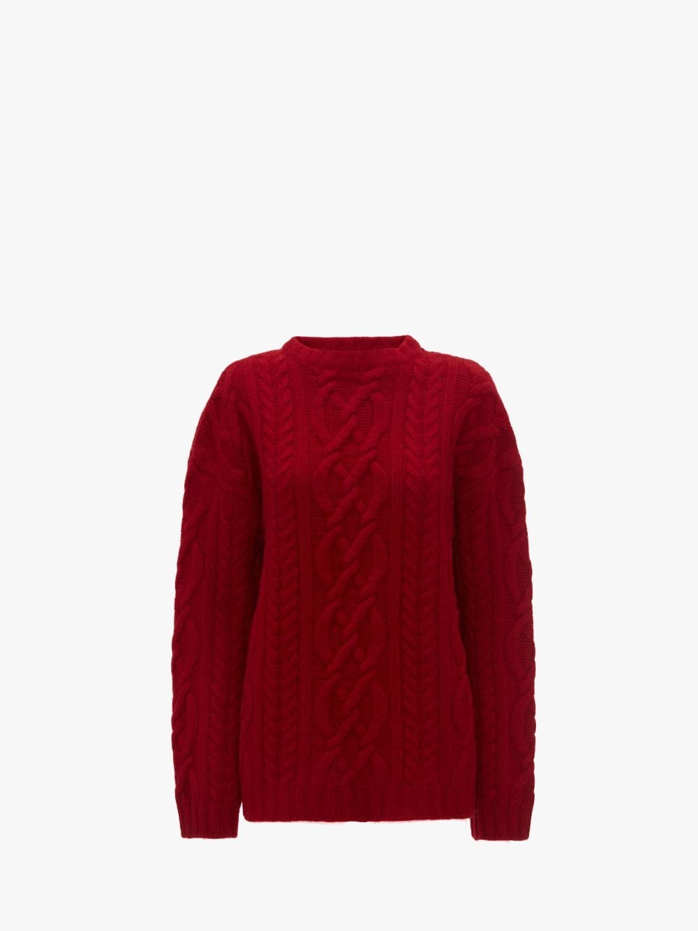 - Regular-fit crew neck sweater with cable knit design - Straight fit - Ribbed crew-neck collar, hemline and cuffs - Cable stitch design - Fits true to size, take your normal size Additional Information - Colour: Bright Red - Composition - Main: 100% Extrafine Merino Wool - Made in Italy