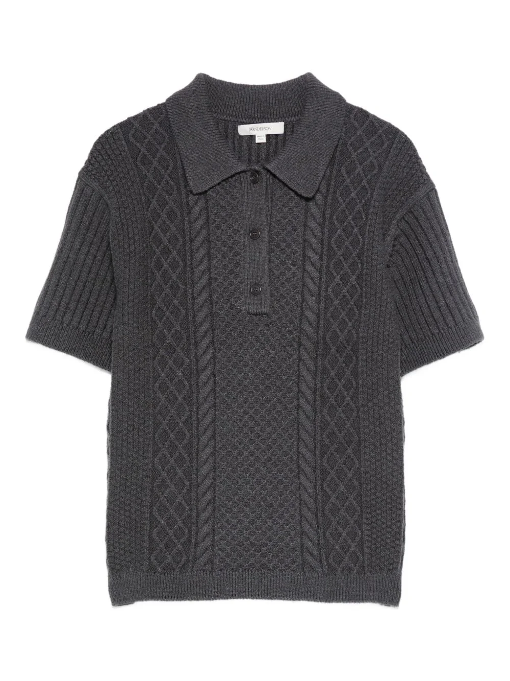 cable-knit polo-neck polo top Highlights - Charcoal grey - Cable knit - Polo neck - Short sleeves - Button fastening Imported Composition Cotton 27%, Wool 27%, Polyamide 26%, Polyester 17%, Elastane 3% SIZE & FIT Model measurements Height 5 ft 9 in(1.75 m) Bust/Chest 34.64 in(88 cm) Hips 36.61 in(93 cm) Waist 26.37 in(67 cm) Washing instructions Dry Clean Only