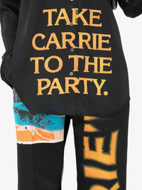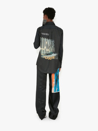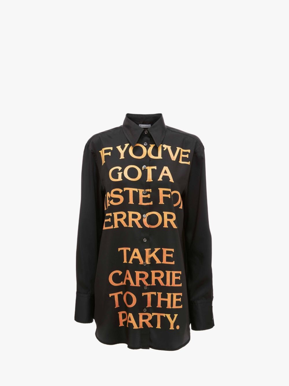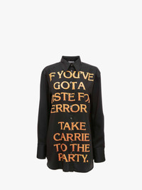 - Long sleeve shirt with tonal buttons - Dropped shoulder and relaxed fit - Digital Carrie quote print on front - Digital Carrie gate print on back - Curved hem with back yoke and pleat - Fits true to size, take your normal size Details - Colour: Black - Composition: 100% Polyester - Made in Poland