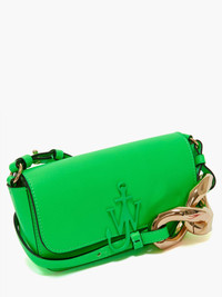 - Two chain links - Front-flap opening with magnetic closure - Tonal 7cm anchor logo with enamel coating - Branded gold Sam Brown attachments - Exterior pocket - Adjustable cross-body strap - Leather inner slip pocket - Suede lining Details - Colour: Neon Green - Dimensions: H: 19cm / W: 5.5cm / D: 11cm - Strap Drop: Long: 50-37cm - Outer: 100% Lamb Leather - Lining: 100% Split Cow Suede - Hardware: 80% Plastic, 15% Brass, 5% Zamak - Made in Spain