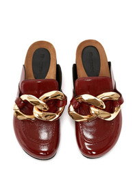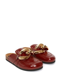 chain-detail leather loafer mules First seen in the SS23 runway show, these loafer mules from JW Anderson combine both style and comfort. Crafted from shiny dust brown leather, this slip-on pair is punctuated by the oversized chain-link detail realised with a polished gold-tone finish. Made in Italy Composition Outer: CALFSKIN 100% Sole: Rubber 100% Lining: Calf Suede 100%
