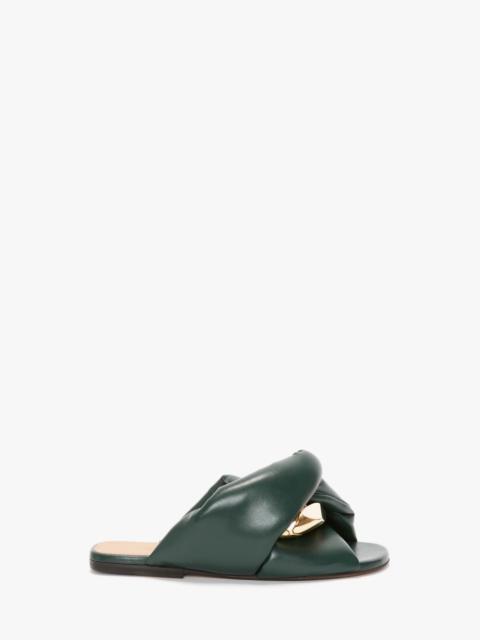 Black leather Chain flat sandals from JW Anderson featuring branded insole, slip-on style, chain-link detailing and flat leather sole.