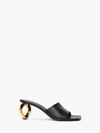 - Leather heel mule sandals - Gold-tone chain link heel - Soft square toe - Fits true to size, take your normal size
