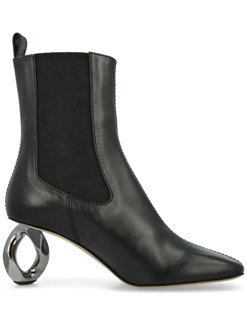 Chain-heel leather chelsea boots Highlights - Black - Back pull-tab - Elasticated side-inserts - Square toe Made in Italy Composition Outer: Calf Leather 100%, Fabric 100% Lining: Calf Leather 100% Sole: Calf Leather 100%