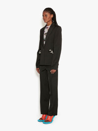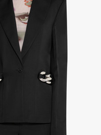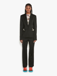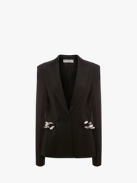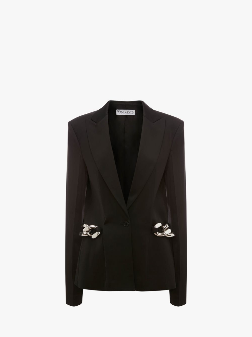 - Straight fit blazer - Peak lapel - Single breasted - Chain link detail on sides - Tonal buttons - Silver hardware - Fully lined - Fits true to size, take your normal size.