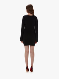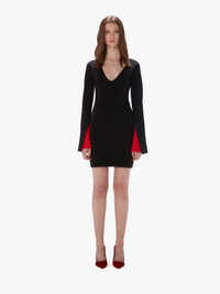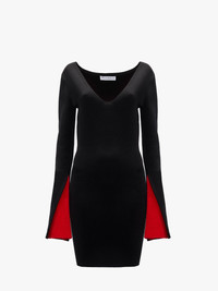 - Long sleeve dress with V neckline - A-line sleeve detail with contrast lining - Anchor logo embroidered on the back - Unlined - Full needle stitch - Fitted silhouette - take your usual size Additional Information - Colour: Black - Composition - Main: 77% Viscose, 17% Polyester, 5% Polyamide, 1% Elastane - Mid weight - Made in China