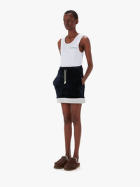 - Double faced stitching - Side slanted pockets - Chenille exterior and woollen interior - Turned up contrasting hemline - Ribbed waistband - Contrasting drawcord - Fitted silhouette, take your usual size Additional Information - Colour: Navy - Composition - Main: 50% Wool, 50% Recycled Polyester - Lightweight pointelle knit design, with contrasting wool accents - Made in China - SKU: KW1301YN0382888