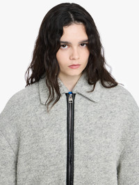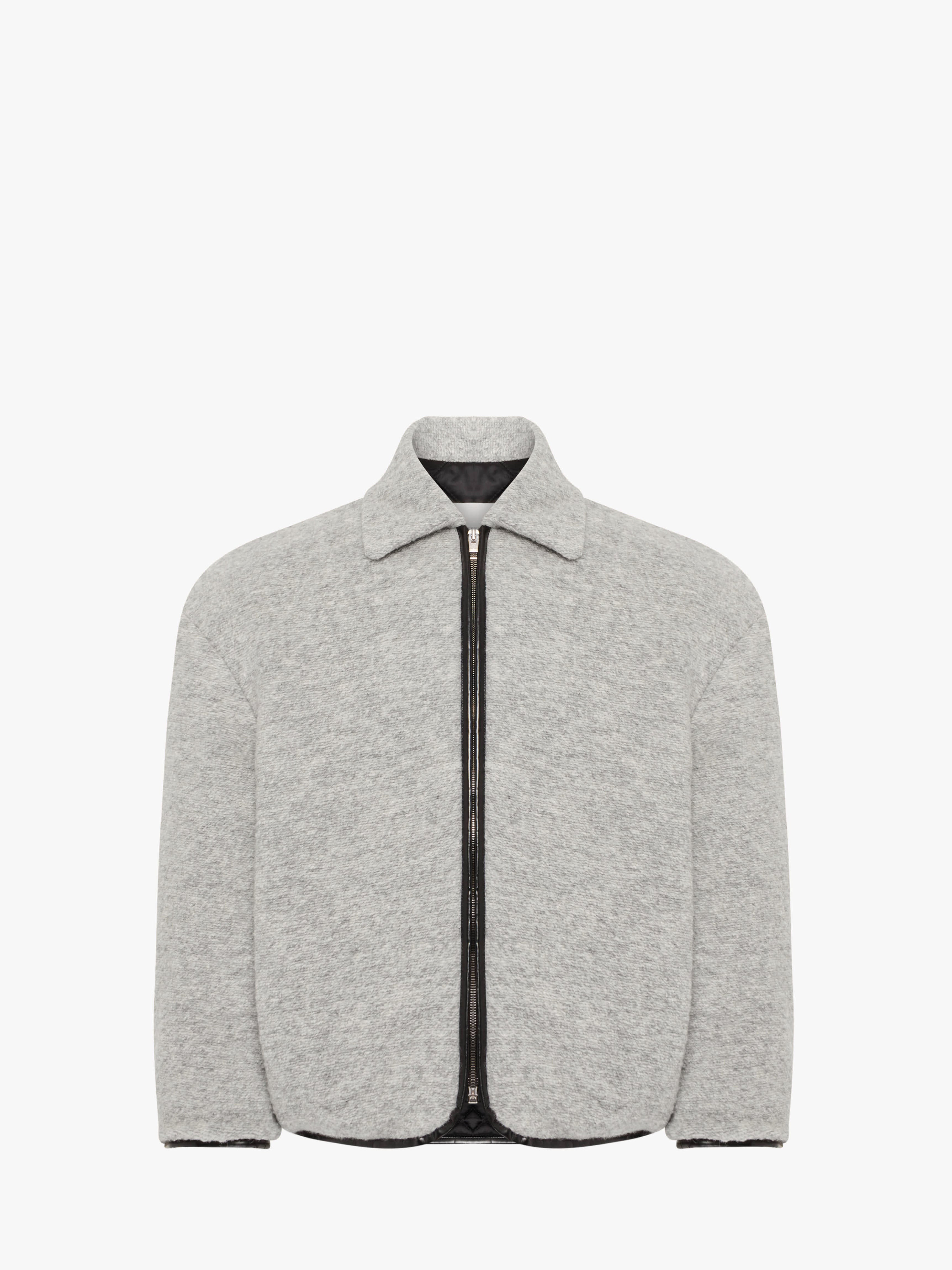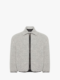 - Relaxed fit casual zip front jacket complete in a lightweight twill fabrication - Contrast faux leather binding around the edges - Side pockets - Logo embossed raw leather patch detailing at centre back - Quilted lining Details - Colour: Light Grey Melange - Composition: 50% Virgin Wool, 33% Cotton, 17% Polyamide - Brushed lightweight twill fabrication - Made in: Bulgaria - SKU: JK0412PG1820905 - Model Height: 178cm, Model Wearing Size: M