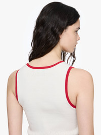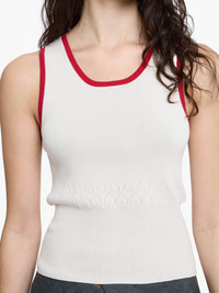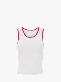 - Knitted vest top with fitted silhouette and contrasting trims - Contrast ribbed trims - Pointelle logo at centre back - Unlined - Jersey pointelle stitch Details - Colour: Washed Black - Composition: 82% Cotton, 18% Nylon - Mid weight - Centre back length: 48cm - Made in: China - SKU: KW1442YN0432781