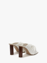 - Leather high heel mules - Twist detailing with gold chain link - Soft square toe - Fits small to size, take one size larger than normal.