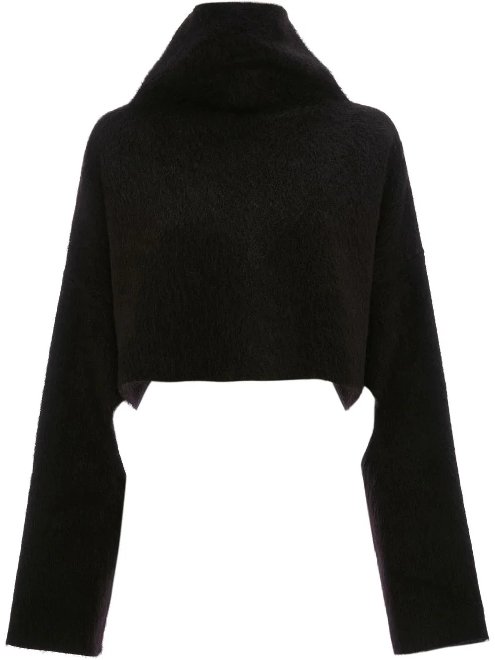 cut-out oversized cropped jumper Conveying JW Anderson's knack for unexpected silhouettes, this contemporary jumper plays with proportions by combining an oversized design with a cropped fit. Cut-out detailing on the sleeves presents one of the label's seasonal AW22 motifs. Made in Italy Composition Wool 44%, Mohair 38%, Nylon 18%