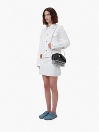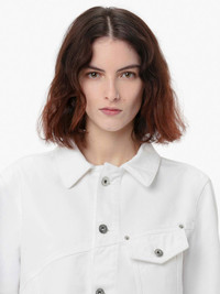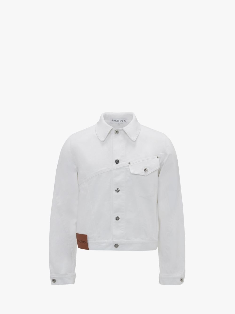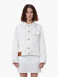 - Boxy fit denim jacket - Twisted panel construction - Tonal top stitching - Logo embossed pecan leather patch - Silver hardware - Unlined - Oversized style, designed to be worn loose. Take your usual size.