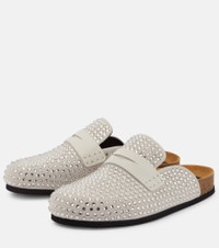 Crystal-embellished suede slippers