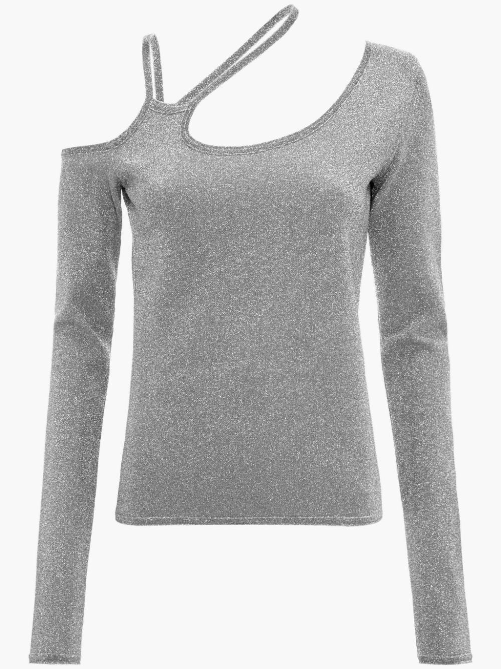 - Long sleeve top with cut out detail - Fitted silhouette - Mini tubular knitted binding on hem - Fits true to size, take your normal size Details - Colour: Silver - Composition: 83% Viscose, 17% PBT - Made in China