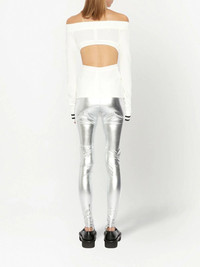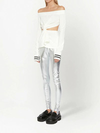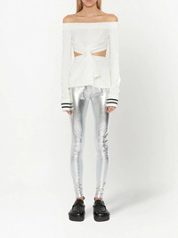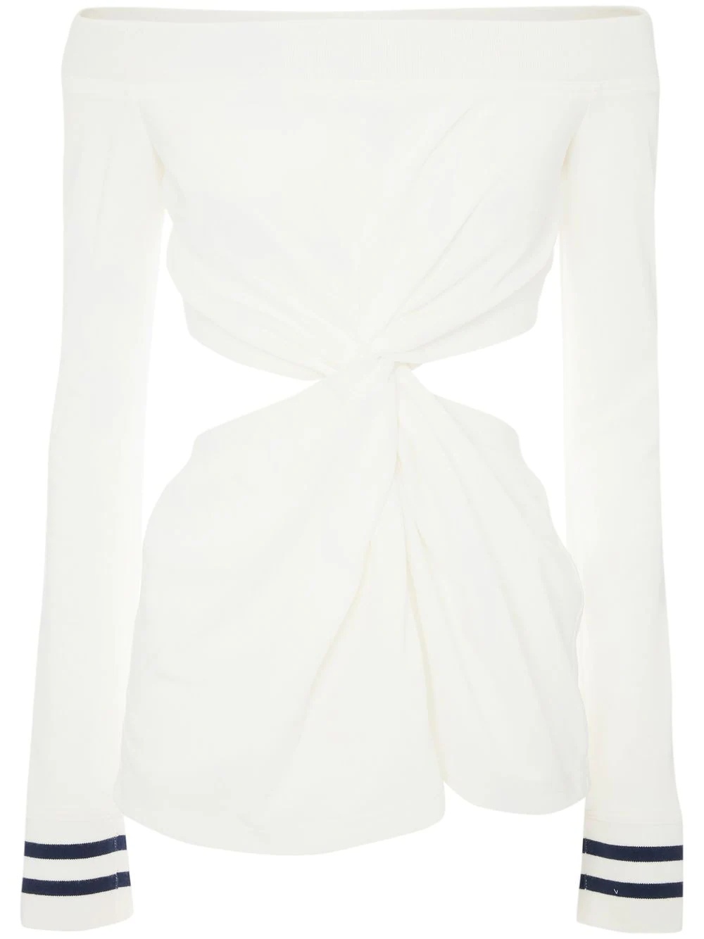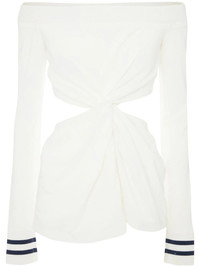 off-shoulder cut-out blouse off-white off-shoulder cut-out detailing twist detailing long sleeves striped cuffs Imported Composition Polyester 100%