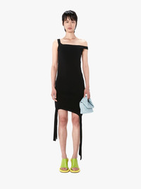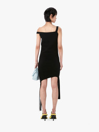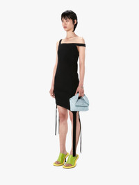- Off the shoulder mini dress - Fitted silhouette with curved lines and strap detail - Asymmetric hem with side slit - Slip on - Tonal embroidered anchor logo on upper back - Fits true to size, take your normal size