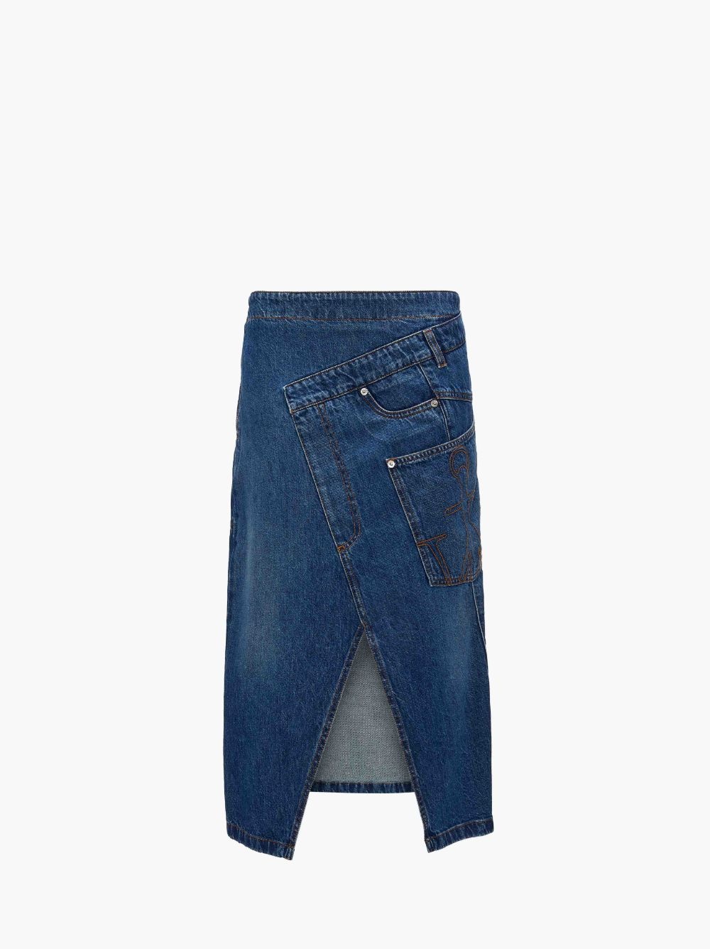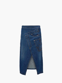 - Denim twisted midi skirt - Pencil skirt - Clean waistband - Front opening - Visible side zip - Silver hardware - Leather patch with logo embossed on the back - Unlined - Fits true to size - take your usual size Additional Information - Colour: Blue - Composition - Main: 100% Cotton - Denim twill - 10.5oz Rigid - Made in Italy