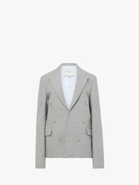 - Oversized double-breasted tailored jacket - Front patch pockets - Self covered decorative buttons on front - Snap closure - Internal pocket - Buttoned cuffs - Open slit at centre back - Contrast lining Details - Colour: Clay Melange - Composition: 100% Wool - Twill construction - Sleeve length: 93cm - Centre back length: 69cm - Made in: Romania - SKU: JK0401PG1821118