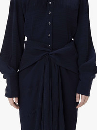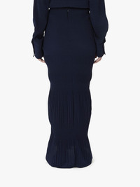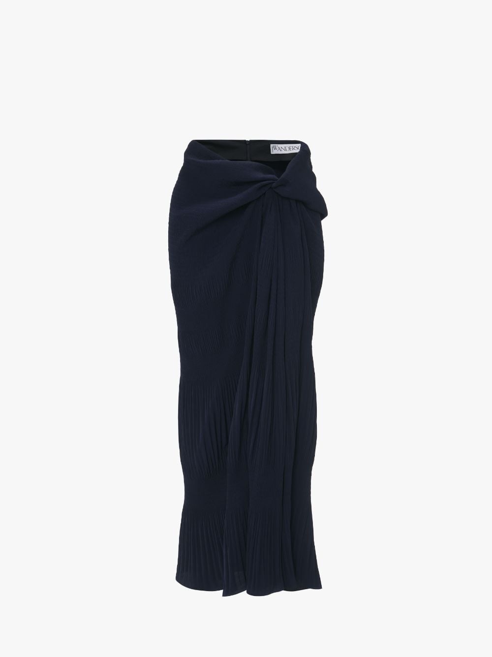 - Fitted silhouette long skirt - Twisted waistband detail - Draped front - Pleated fabric - Invisible centre back zip - Fits true to size, take your normal size.