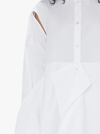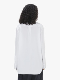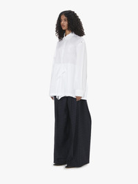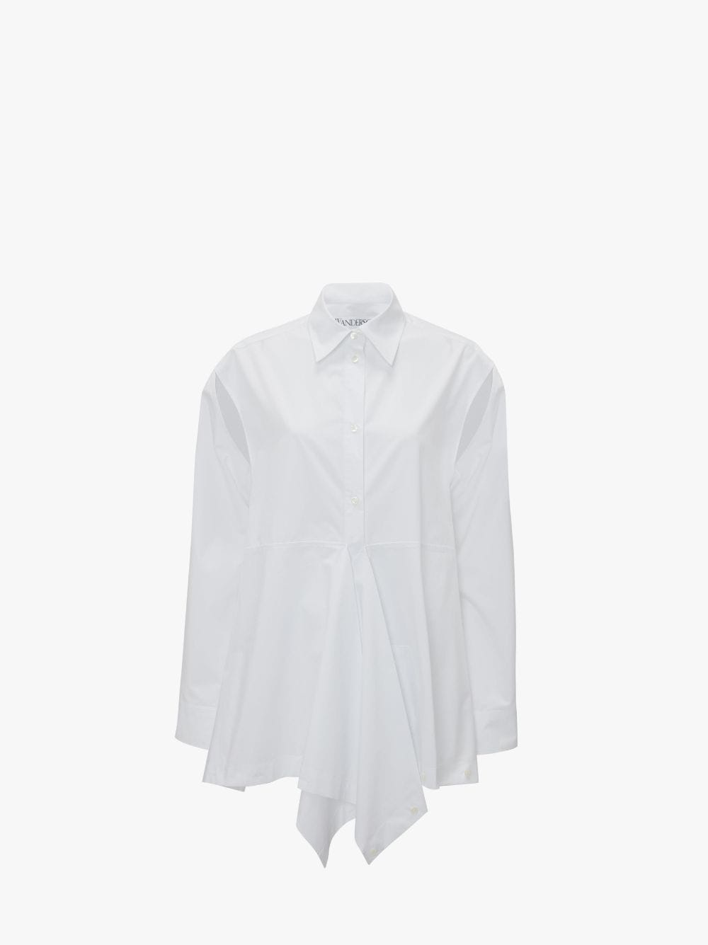 - Boxy fit shirt - Shirt patchwork inspiration - Dropped shoulder - Low armhole - Cut out details - Layered drape hem - Back pleat - White anchor embroidery on upper centre back - Oversized style, designed to be worn loose. Take your usual size.
