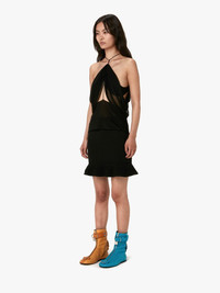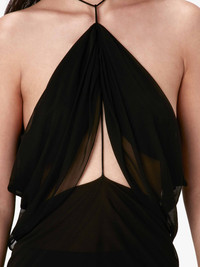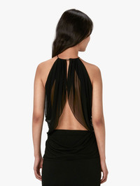 - Fitted silhouette sleeveless top - Draped construction - Double layered - T-bar closure at back neck - Fits true to size, take your normal size. Details - Colour: Black - Composition: 100% Polyester - Natural stretch - Lightweight - Made in Poland