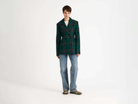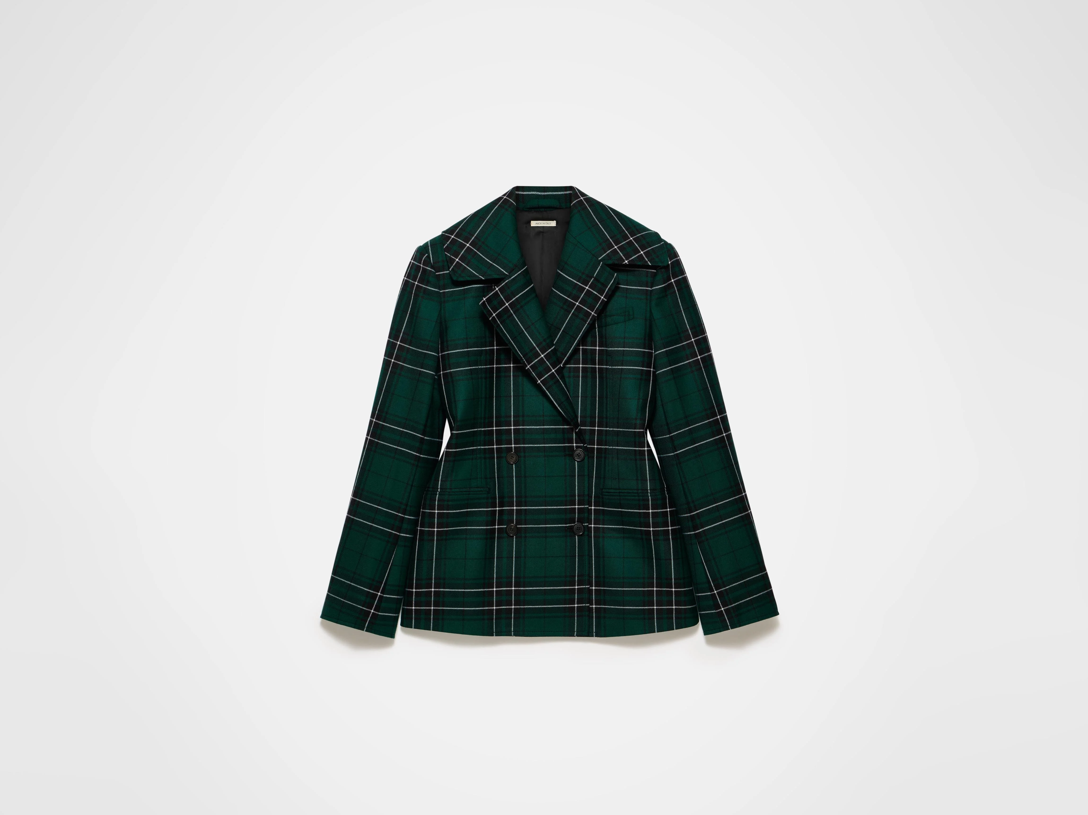 Tailored in Italy, this double-breasted jacket in forest green features a cinched waist, wide asymmetric collar and lapel. Fully lined and finished with horn buttons. Details - Colour: Forest Green - Composition [Main]: 100% Wool - Composition [Lining]: 100% Cupro - Made in: Italy - Model [Wears]: Size 8 | 175cm Tall - SKU: JK0424PG1882560