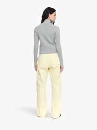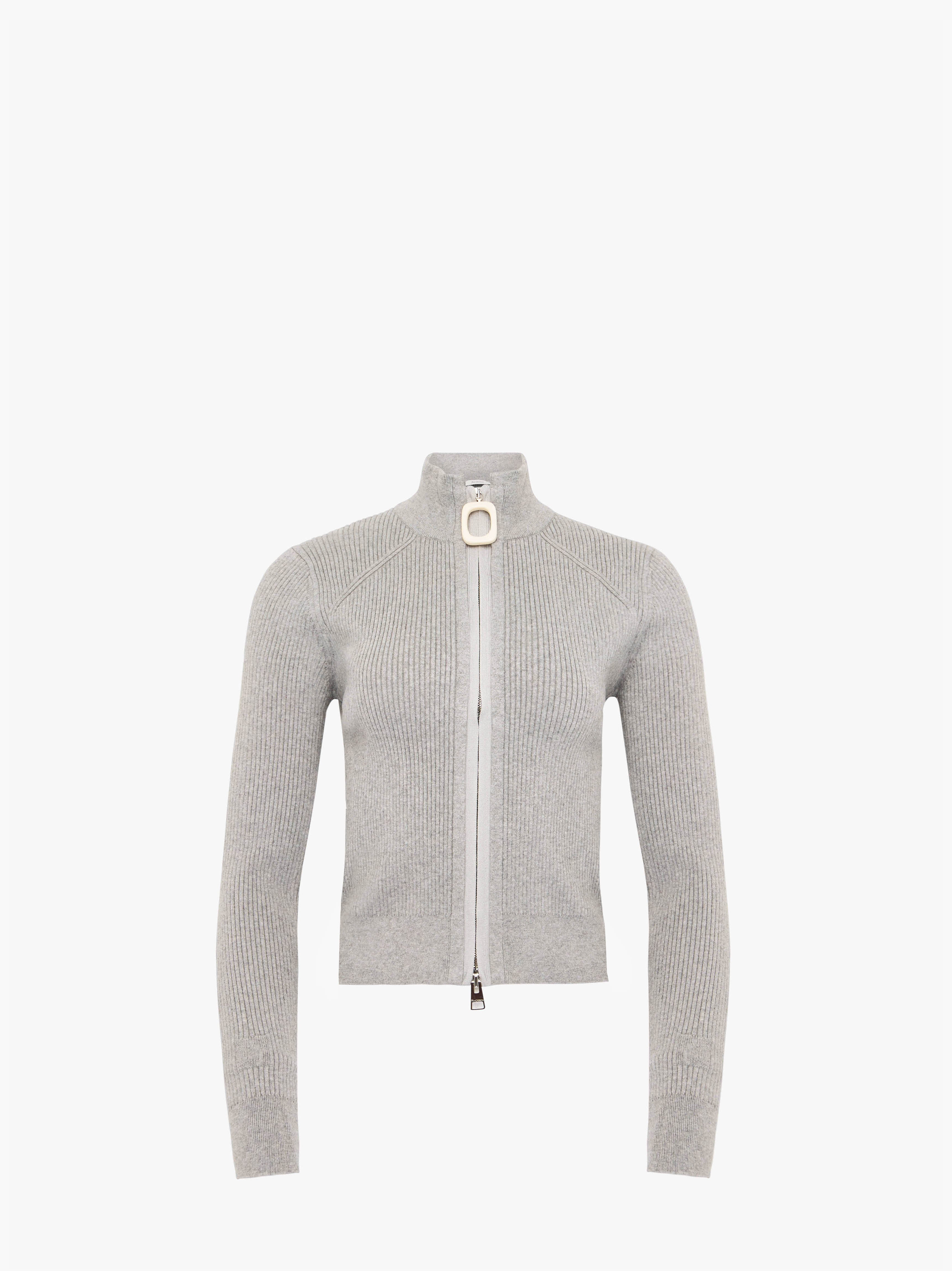 - Knitted zip front cardigan - Ribbed mock neck - Anchor embroidery on sleeve - Double ended zip closure - Contrasting signature JWA puller - Fitted silhouette, take your usual size Details - Colour: Light Grey Melange - Composition: 84% Cotton, 11% Polyamide, 4% Cashmere, 1% Elastane - Light-weight knitted fabrication - Made in: China - SKU: KW1353YN0398905