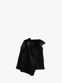 - Wool gabardine mini skirt with fold over waistband - Shank buttons - Side pockets - Rear welt pocket - Silver hardware - Fits true to size, take your usual size