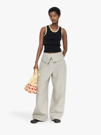 - Tailored trouser complete with asymmetric fold over waistband - Knot button at front - Wide leg - High rise - Side pockets - Unlined Details - Colour: Clay Melange - Composition: 100% Cotton - Dyed in garment fabrication - Made in: Romania - SKU: TR0414PG1821118