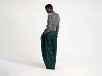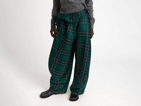 A fresh take on the classic JW Anderson fold over trouser in forest green tartan. Finished with an antique brass buckle and embroidered eyelets. Details - Colour: Forest Green - Composition [Main]: 100% Wool - Composition [Lining]: 100% Cupro - Made in: Italy - Model [Wears]: Size 8, 180cm Tall - SKU: TR0425PG1882560