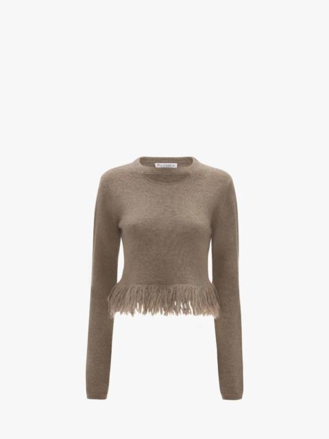 - Slikm fit long sleeve top - Cropped length - Cut out neckline - Tonal fringe detail on hem - Tonal anchor embroidery on back neck - Single jersey stitch - Fits true to size, take your normal size.