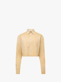 - Garment dyed cropped shirt - Dropped shoulders - Tonal button fastening - Tonal anchor embroidery - Boxy fit - take your usual size Details - Colour: Light Tobacco - Composition: 100% Cotton - Garment Dye Poplin Fabrication - Made in: Bulgaria - SKU: SH0357PG1764289