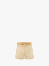 - Garment dyed tailored shorts - High-rise waistline - Degrade waistband detailing - Frontal piping design - Tonal anchor embroidery on rear - Tonal buttons - Side pockets - Regular fit - take your usual size Details - Colour: Light Tobacco - Composition: 100% Cotton - Garment Dye Poplin Fabrication - Made in: Bulgaria - SKU: SR0120PG1764289