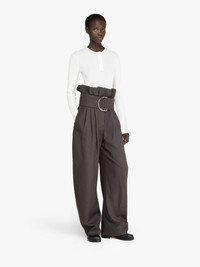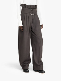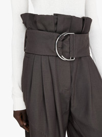 - Tailored trouser with tapered leg - Gathered high-rise waist detailing - Silver-toned D-ring detailing - Side pockets - Regular fit - take your usual size Details - Colour: Charcoal - Composition: 99% Viscose,1% Silk - Viscose Silk Fabrication - Made in: Italy - SKU: TR0402PG1684599