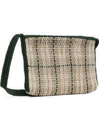 Plain-woven cord shoulder bag in gray and green. · Detachable logo tag at crossbody strap · Zip closure · Unlined · H7" x W10.5" x D1" Supplier color: Grey/Green Textile. Made in Georgia 251477F048016
