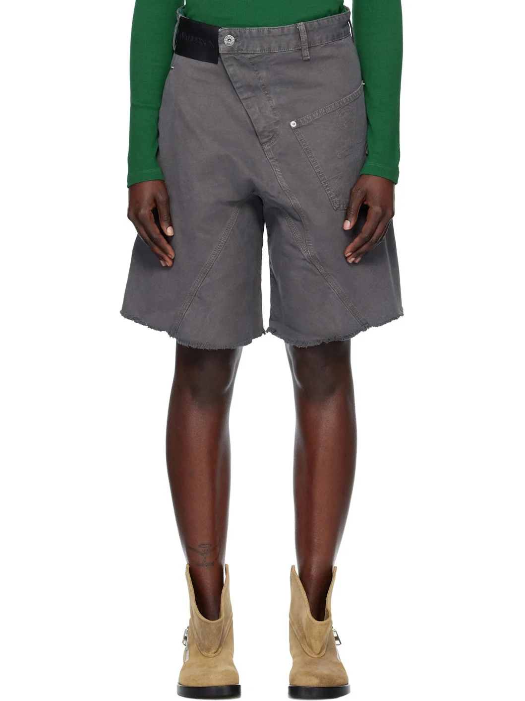 Cotton canvas shorts. · Belt loops · Four-pocket styling · Offset zip fly · Logo patch at front waistband · Logo embroidered at front pocket · Frayed edge at cuffs · Hammer loop at outseam Supplier color: Grey 100% cotton. Made in Bulgaria 241477F088002