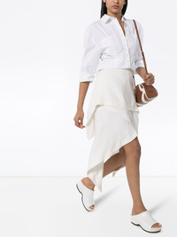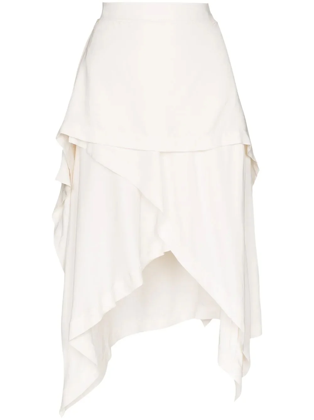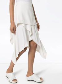 layered handkerchief skirt Been skirting around the issue of updating some SS20 looks? Let JW Anderson help sort you out with this off-white layered handkerchief skirt that creates intrigue and dynamism with your look thanks to its tiered design. Featuring a high rise, a side button fastening, a tiered design and an asymmetric hem. Imported Composition Cupro 77%, Modal 23% SIZE & FIT Model measurements Height 5 ft 11 in(1.8 m) Bust/Chest 31.49 in(80 cm) Hips 37 in(94 cm) Waist 25.98 in(66 cm) Measurement LENGTH 28.74 in(73 cm) WAIST 25.59 in(65 cm) FittingInformation This piece fits true to size. We recommend you get your regular size Cut for a relaxed fit Made with a mid-weight fabric Washing instructions Hand Wash