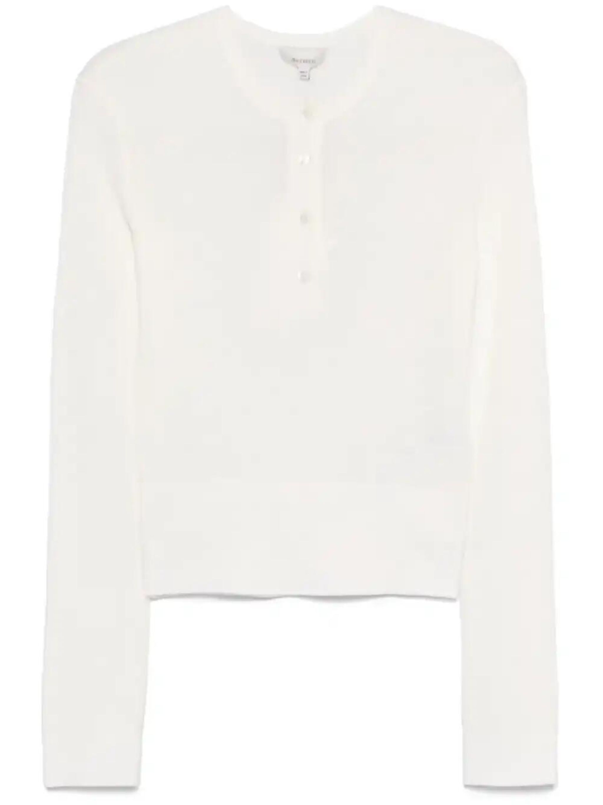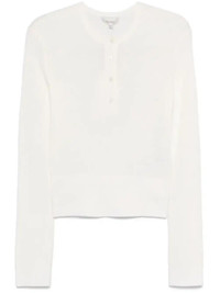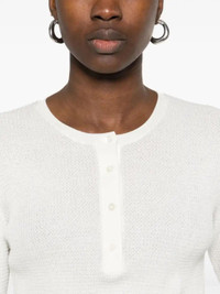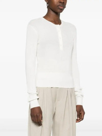 white short front button fastening ribbed cuffs and hem crew neck long sleeves Size & Fit Model Measurements: Height: 1.8 m Bust/Chest: 83.0 cm Hips: 92.0 cm Waist: 62.0 cm Model wears size S Fabric and Care Designer Style ID: KW1417YN0432002 Designer Colour: 002 OFF WHITE Composition: Cotton 81%, Polyamide 19% Washing instructions: Dry Clean Only