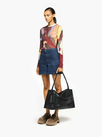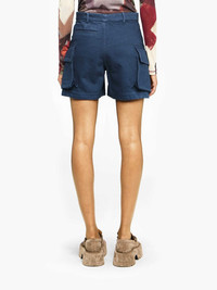 - Cargo shorts with large slanted patch pocket detailing - Mid-rise waistline - Side pockets - Leather patch with logo embossed on the back - Relaxed fit - take your usual size Additional Information - Colour: Light Indigo - Composition: 100% Cotton - Mid-weight twill fabrication - Made in: Portugal - SKU: SR0117PG1730770