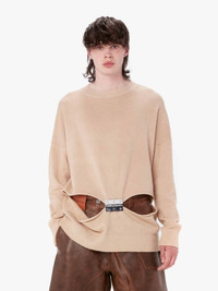 - Crewneck jumper - Relaxed fit and dropped shoulder - Ribbed neckline, hem and cuff - Slit and hinge detail - Tonal anchor embroidery on back - Oversized unisex style, designed to be worn loose. Take your usual size