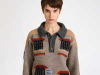 Women's hand-crocheted polo house jumper in beige melange intarsia jacquard knit. An archive design, selected from the runway Resort 2025 show, reimagined. Features hand-embroidered details, finished with horn buttons. Details - Colour: Beige Melange - Composition [Main]: 100% Wool - Made in: Ireland - Model [Wears]: Size L, 175cm Tall - SKU: KW1527YN0461133
