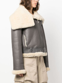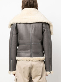 Jacke fleece-collar leather coat beluga grey/off-white lambskin grained texture fleece lining asymmetric design off-centre front zip fastening front buckle fastening two side slit pockets long sleeves straight hem Imported Composition Lambskin 100% SIZE & FIT Model measurements Height 5 ft 10 in(1.79 m) Bust/Chest 32.67 in(83 cm) Hips 34.25 in(87 cm) Waist 24.4 in(62 cm) FittingInformation Designed for a boxy fit, intended for a loose fit throughout Soft leather has a supple and smooth construction offering some flexibility This piece fits true to size – take your usual size Washing instructions Specialist Cleaning