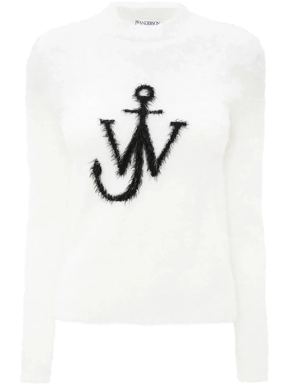 JW Anchor print textured jumper Crafted from lightweight Italian yarn, this JW Anderson logo print textured jumper is designed in an optic white shade with a contrasting black intarsia JW Anchor logo on the front. Made in Italy Composition Polyamide 100%