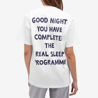 Adding a playful twist to a classic, the JWA Back Print T-Shirt from JW Anderson is ideal for those who love to sleep. Crafted from cotton in a crew neck silhouette, this tee features a small screen printed logo on the chest and a large 'Real sleep' graphic on the back - the perfect reminder to grab those important zzz's. - 100% Cotton - Crew Neckline - Large Graphic on Back - Printed Chest Branding - Made in Portugal