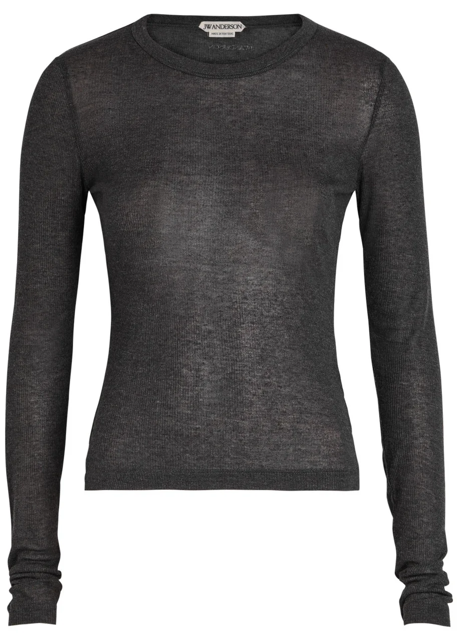 Info & Care JW Anderson modal top Crew-neck, ribbed trims Slips on; 100% modal; Machine wash; Size & Fit Length shoulder to hem: 21.5 inches/ 55cm Midweight Slim fit Model is 5'10"/ 178cm and wears a size small
