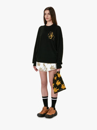 - Relaxed fit jumper - Crew neckline - Contrast intarsia JWA logo on bunny on chest - Dropped shoulder - Ribbed hems, cuff and neck line - Jersey intarsia stitch - Oversized unisex style, designed to be worn loose. Take your usual size Additional Information - Colour: Black - Composition: 100% Merino Extrafine Wool - Jersey intarsia stitch - Light weight - Made in China