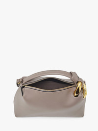 - Leather crossbody Corner bag with signature gold chain link - Detachable leather crossbody strap - Embossed logo on outer panel - Zip closure with branded puller - Inner leather pocket - Gold tone hardware - Can be worn crossbody or in hand Additional Information - Colour: Taupe - Dimensions H: 17cm / W: 28cm / D: 11cm - Strap Drop: Long: 52cm / Short: 8cm - Outer: 100% Full grain calf leather - Lining: 100% Polyester - Hardware: 50% ABS, 50% zamak - Made in Spain